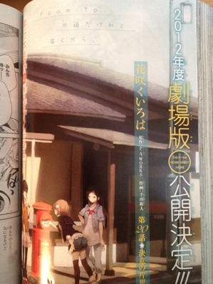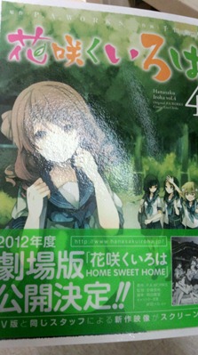 以「新的影像作品」為名義製作中的《花開物語(花咲くいろは) HOME SWEET HOME》,分別透過在 5 月 22 發售的同作漫畫版第 4 卷的書腰,以及連載該作的漫畫月刊雜誌《GANGAN JOKER》,發表了將以劇場版電影公開的消息。