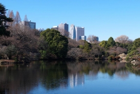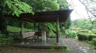 作中的主要場景,代表標題中的「庭」。場景原型實際取材自橫跨東京新宿區與澀谷區的國民公園「新宿御苑」中的日本庭園區。園內植物種類眾多,是賞櫻與賞楓的著名景點,新海誠在電影製作期間也經常帶著筆電徜徉其間進行創作。